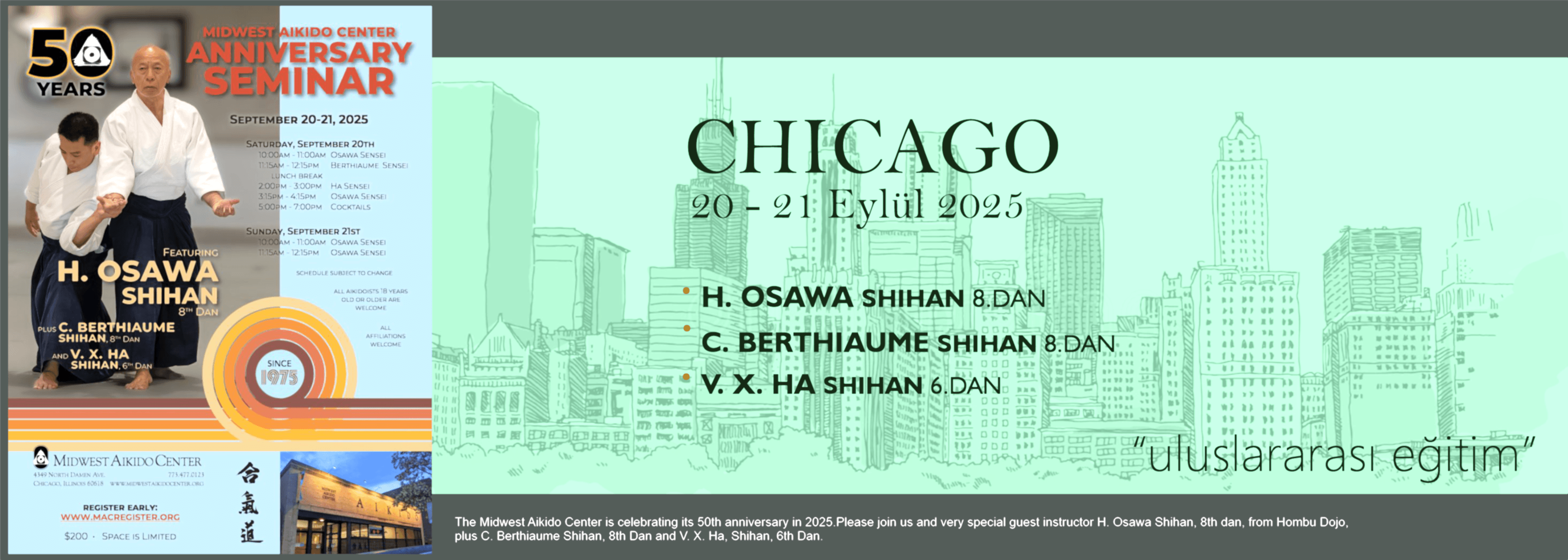 Azerbaycan'da aikido, uluslararası alanda başarılı bir şekilde öne çıkıyor. UAAP 2025 programı kapsamında İtalyan 7. Dan Roberto BOLLERO Shihan liderliğinde "ULUSLARARASI AİKİDO EĞİTİMİ" düzenlenecek, bu fırsatı kaçırmayın!